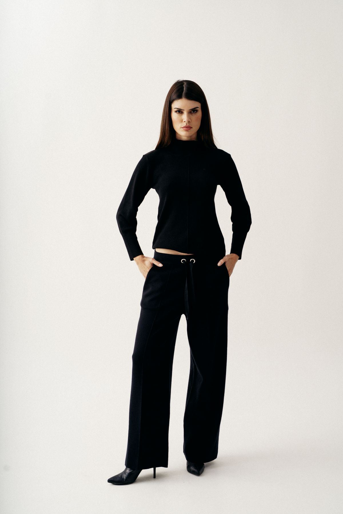 Transforme seu estilo com a Blusa Básica Preta em Tricô com Ilhós nas Costas e sinta-se confiante em qualquer ocasião!