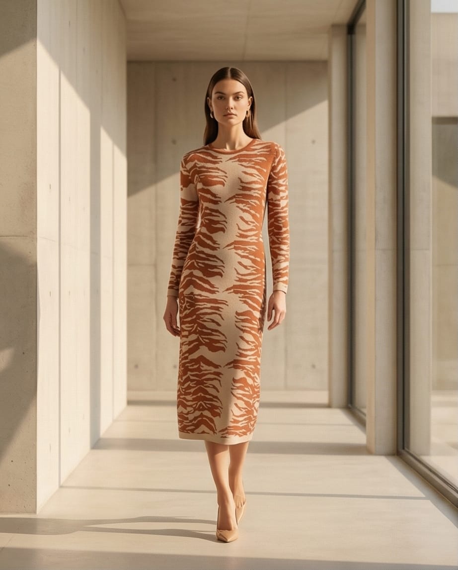 VESTIDO ANIMAL PRINT EM TRICÔ,