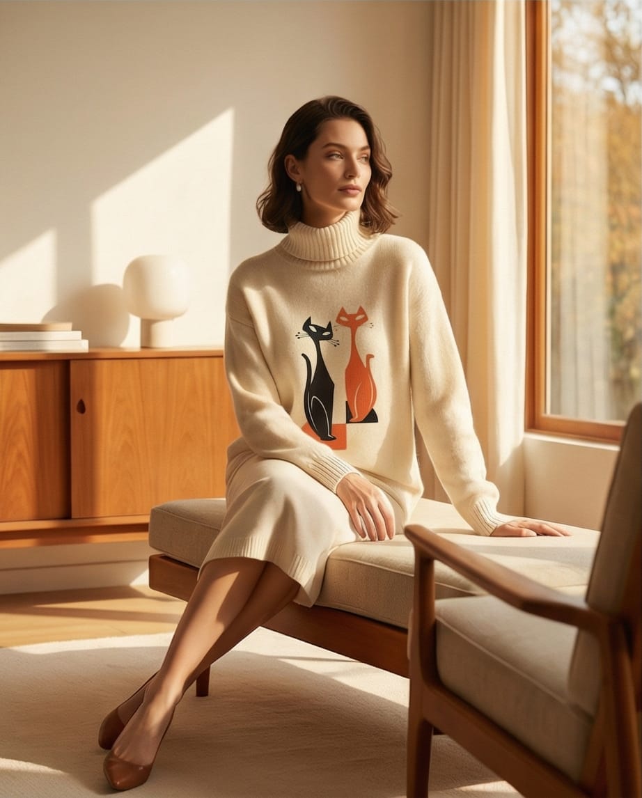 MAXI PULL EM JACQUARD PET COM GOLA ALTA, CAT